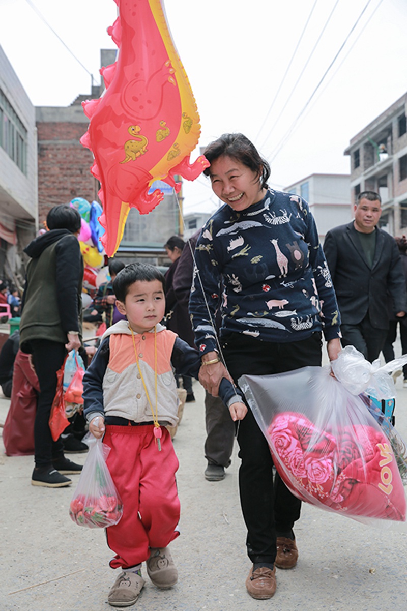3月12日,人们在湖南省邵阳市隆回县六都寨镇丁山村集市采购后准备离开。新华社发(曾勇 摄)