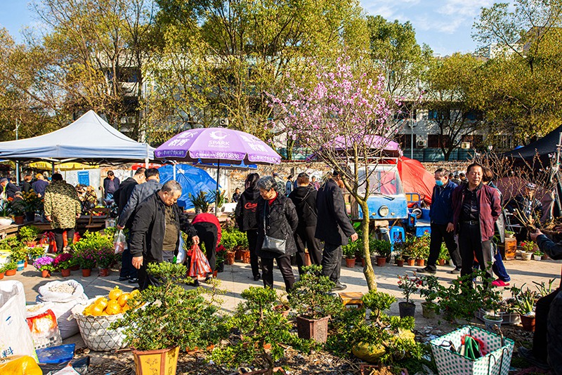 3月11日,在浙江省温岭市太平街道集市上,人们挑选苗木、果树准备回家种植。新华社发(徐伟杰 摄)