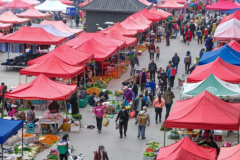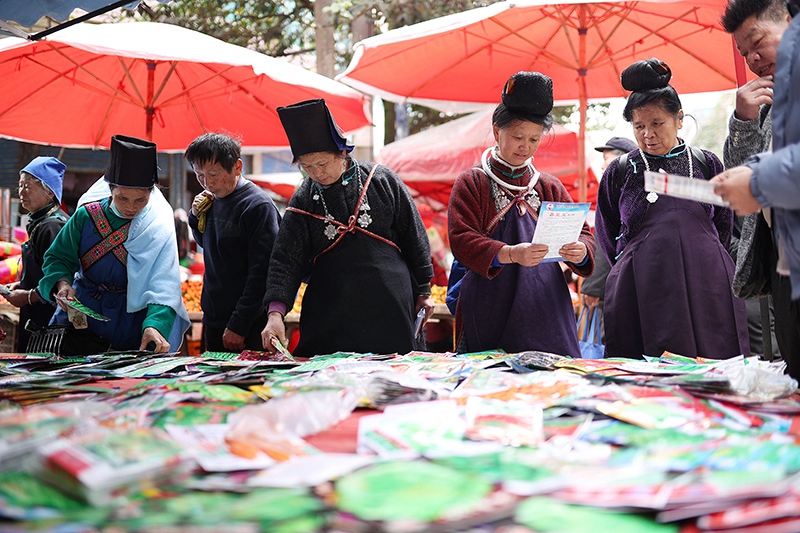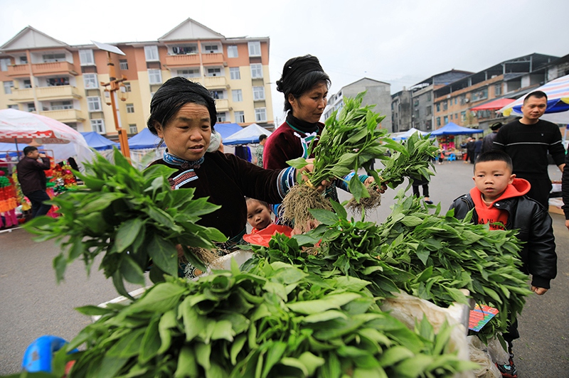 3月13日,人们在云南省红河哈尼族彝族自治州屏边苗族自治县玉屏镇赶集。新华社发(张洪科 摄)