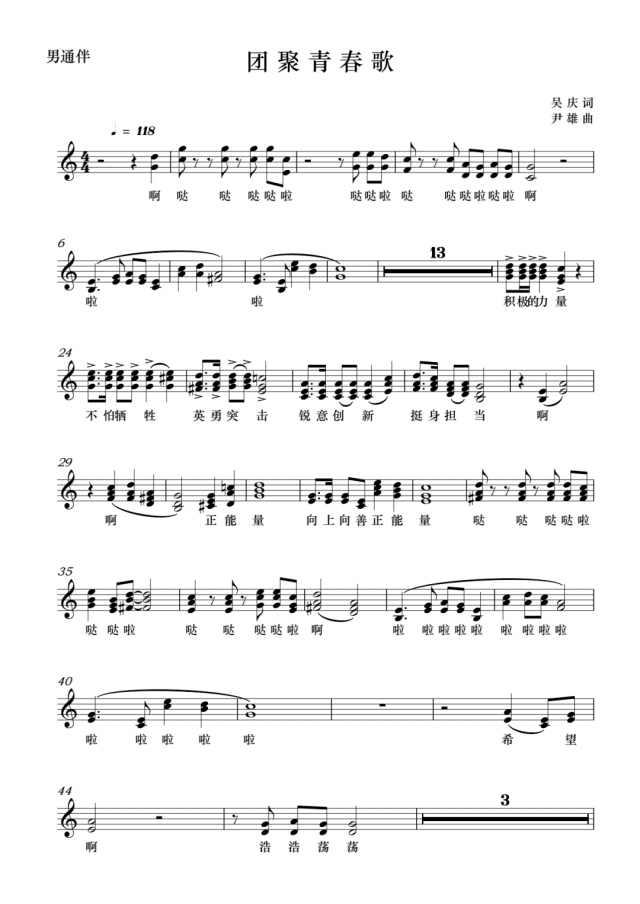 ● 《团聚青春歌》是由中央团校教授吴庆作词,尹雄作曲,于2022年1月创作,此歌是为了庆祝中国共产主义青年团成立100周年而创作。歌曲以青春阳光的曲调将共青团百年的使命、职责、口号、作风一一唱来,回顾了共青团百年的青春奋斗历史,清晰表达了共青团做好青年群众工作的职能,塑造了向上向善、发光发热、充满无限希望的跟着党的青春正能量团队形象。在歌曲首次发表后,不少读者纷纷留言索要更多能够传唱的资料,今天更新,希望大家喜欢并传唱。