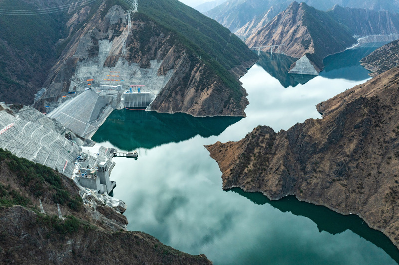 这是3月17日拍摄的雅砻江两河口水电站及库区(无人机照片)。新华社记者 沈伯韩 摄