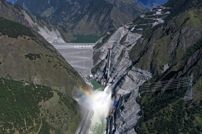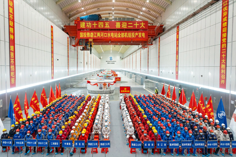 3月18日拍摄的雅砻江两河口水电站全部机组投产发电仪式。新华社记者 沈伯韩 摄