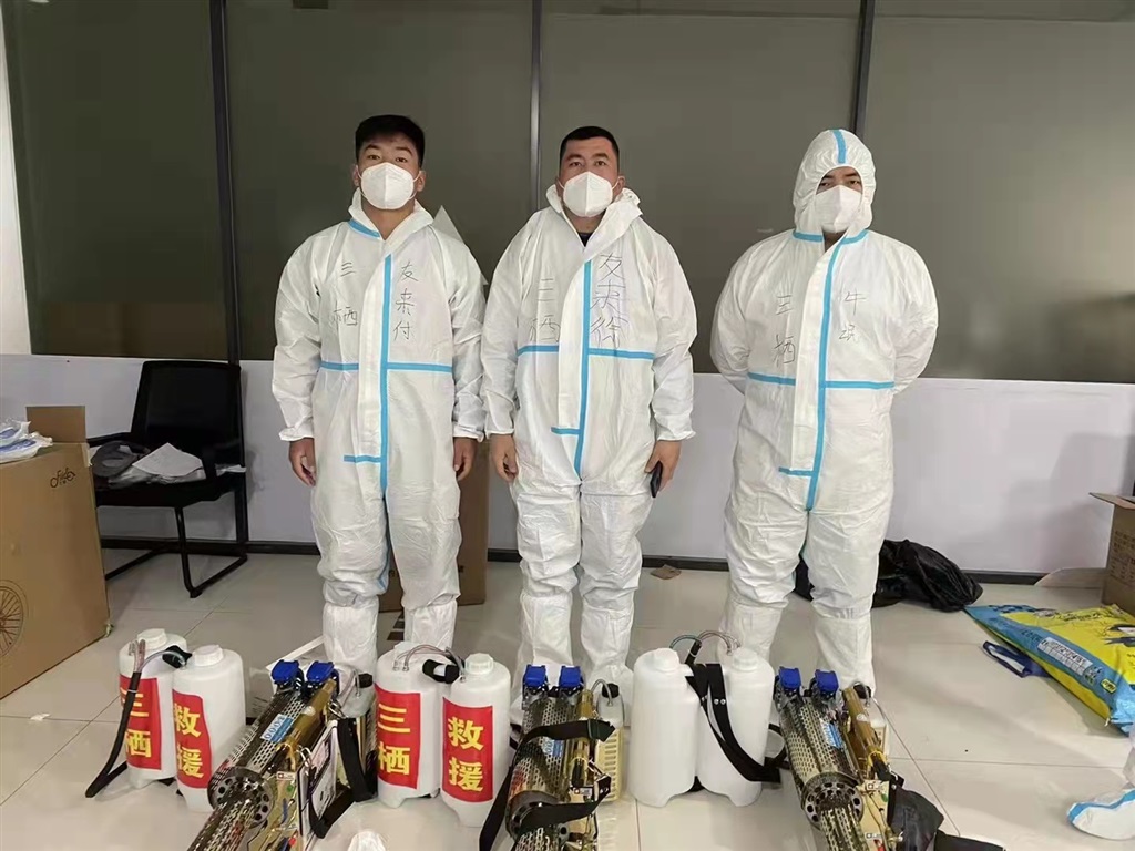徐平志很早就是三栖救援队的一员。面对此次疫情,他毅然决定带领教练员团队加入志愿者队伍。每天他和所有救援队的队友们一起变身“大白”,扛起六、七十斤重的弥雾机,在马路、社区、街道、图书馆等场所完成消杀工作。