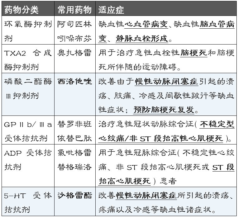 抗血小板药物被广泛用于冠心病、脑卒中和外周动脉疾病的治疗。阿司匹林、氯吡格雷、替格瑞洛、沙格雷酯、奥扎格雷是临床常用的抗血小板药,这5种药物之间有何区别?