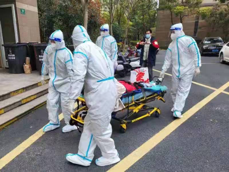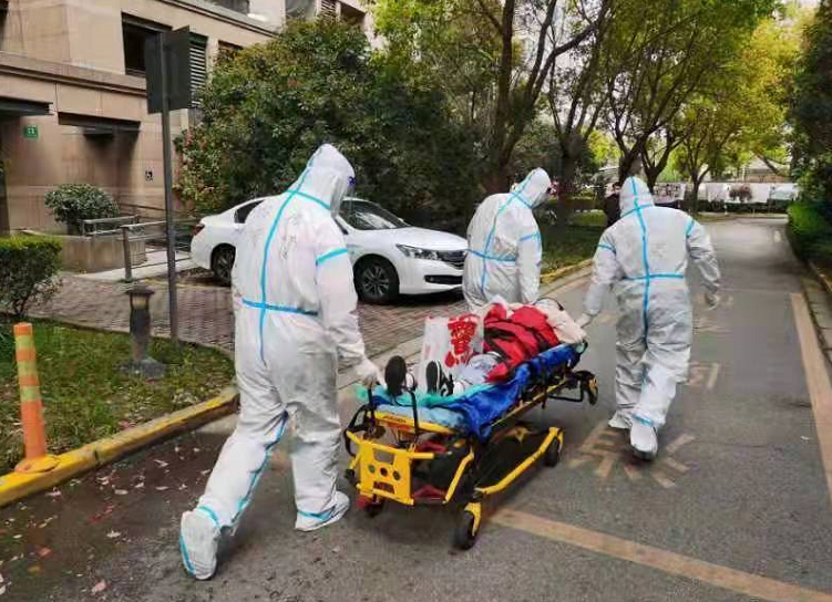 上海市公安局出入境管理局张骥、治安总队张博、刘亚昌和边防港航分局谢治宇等4名青年民警“抢单”成功,火速集结,穿戴好防护服赶到小区门口,与刚刚抵达的“120”救护车转运人员进行了对接。在了解好病人基本情况、转运注意事项后,4位民警用转运担架车将病人推向所在楼栋,并小心翼翼抬起担架进入电梯,将病人稳妥送至家中。