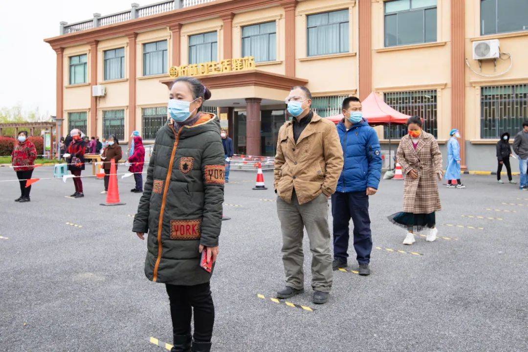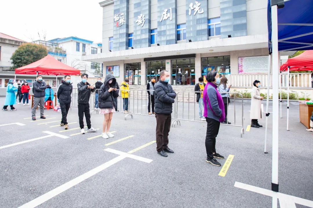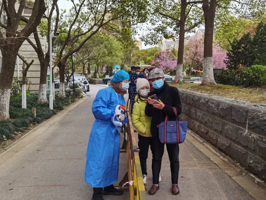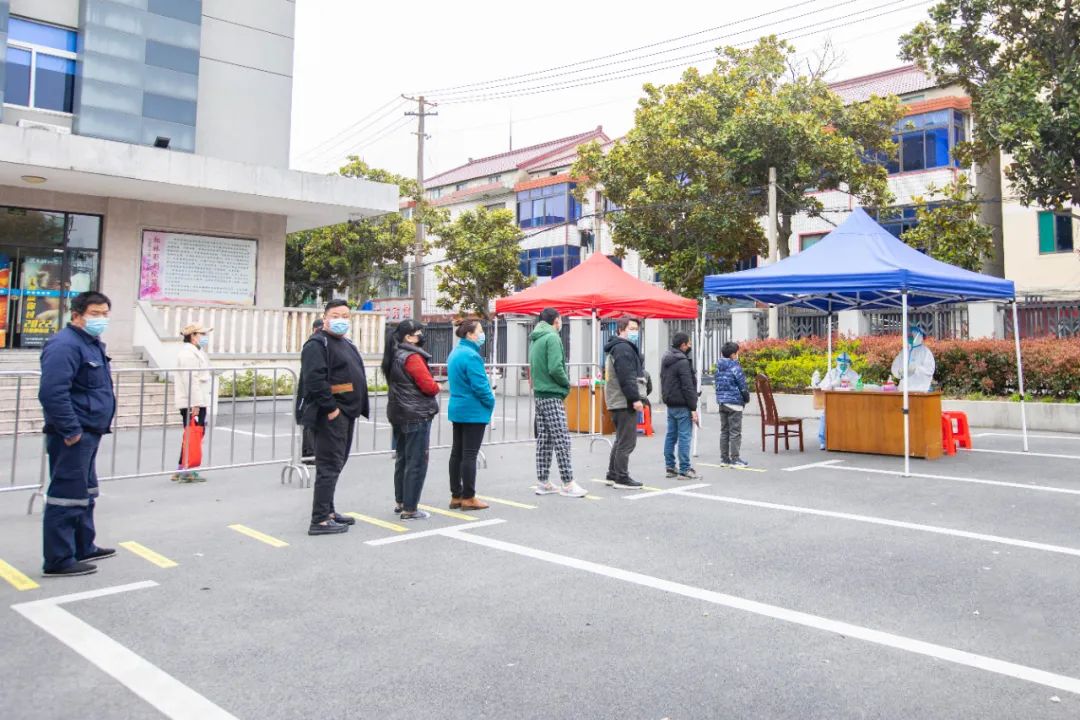 趁着春风,伴着春色,奉城居民们赏着春景,有序排队进行核酸检测。