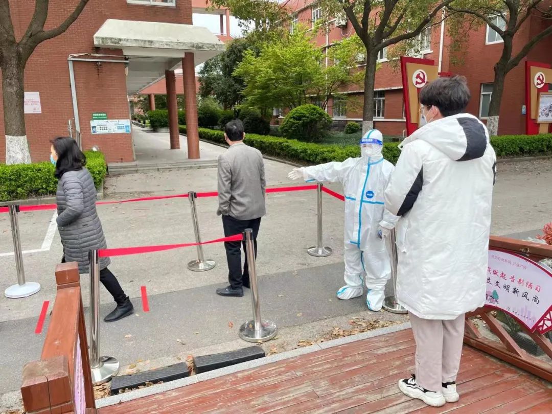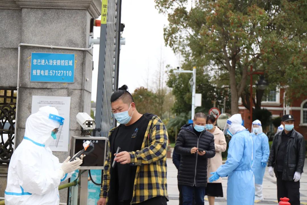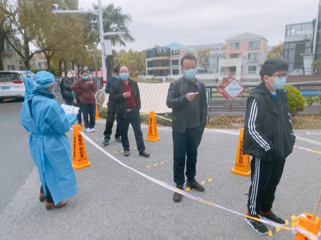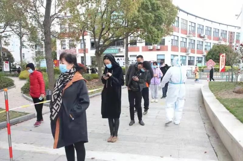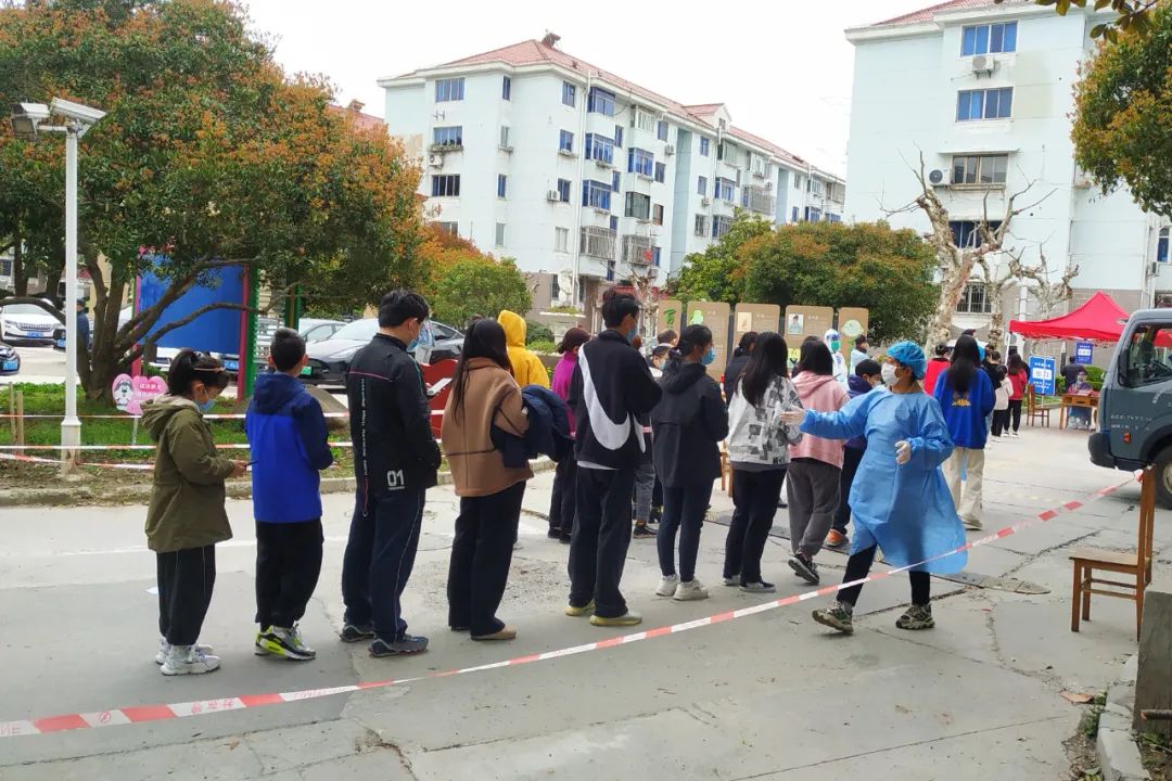 趁着春风,伴着春色,奉城居民们赏着春景,有序排队进行核酸检测。