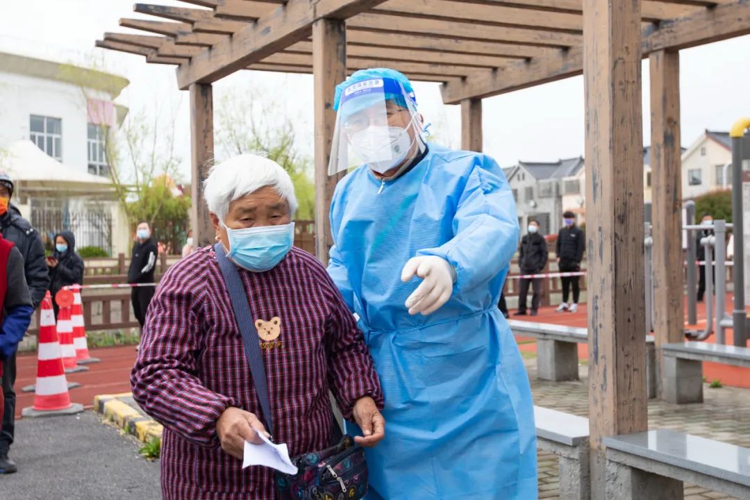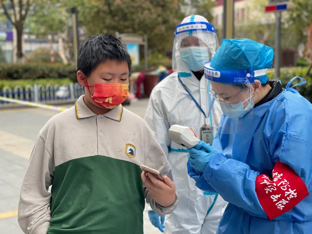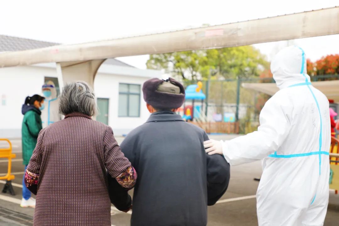 “孩子们先来,他们要上网课。”金海街道核酸检测点为上网课的孩子开辟绿色通道,特殊人群由志愿者1对1照护开展核酸检测。