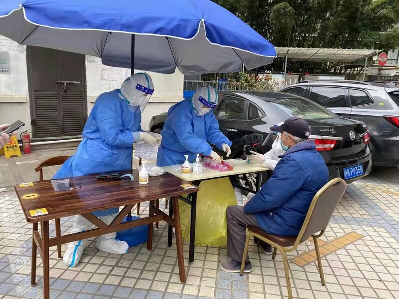 高龄党员郭慈富婉拒大家好意,主动服务自己所在楼栋,一层层楼面去敲门,劝导居民参与检测。75岁的楼组长肖明华也与老伴汪志华一起,第一时间报名担当志愿者。志愿者们还为小区居民送菜、帮居民送快递外卖、物业办公室值班……