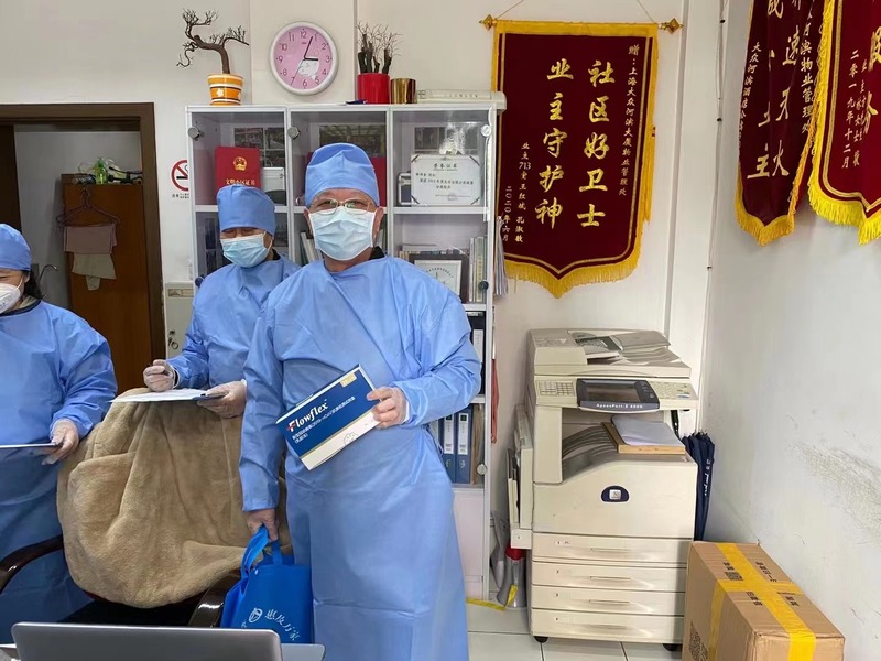 党员张林峰、张薇薇逐户提醒,不漏一人,应检尽检。精通外语的党员陆麟俊成为了沟通中外人员的“语言桥梁”。党员翁志敏为防控工作出谋划策,科学规划检验走线,减少暴露时间,还提出志愿者的胸前贴上了“党员先锋”的标志。