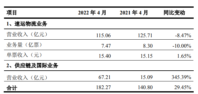 顺丰控股:4月速运物流业务营收同比下降8.47%