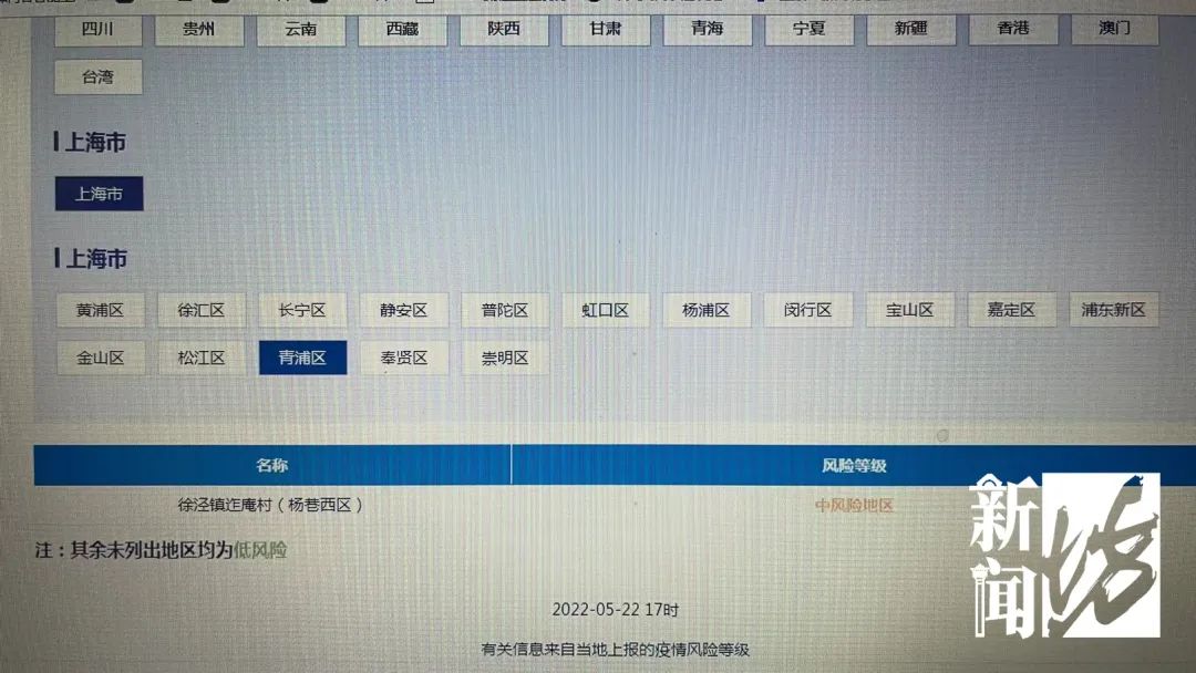 目前上海只有三个中风险地区