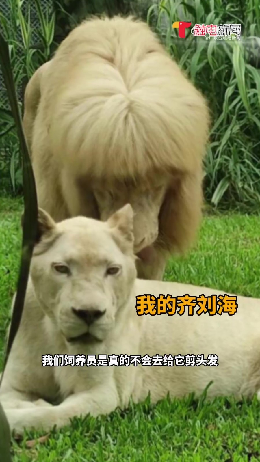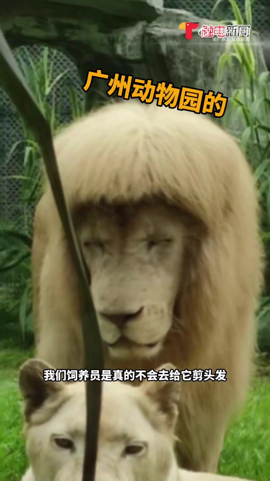 5月29日,广州动物园一只留了齐刘海的狮子火了。有网友称,白化非洲狮从爆炸头变成了齐刘海,怀疑是有人给它剪了头发。