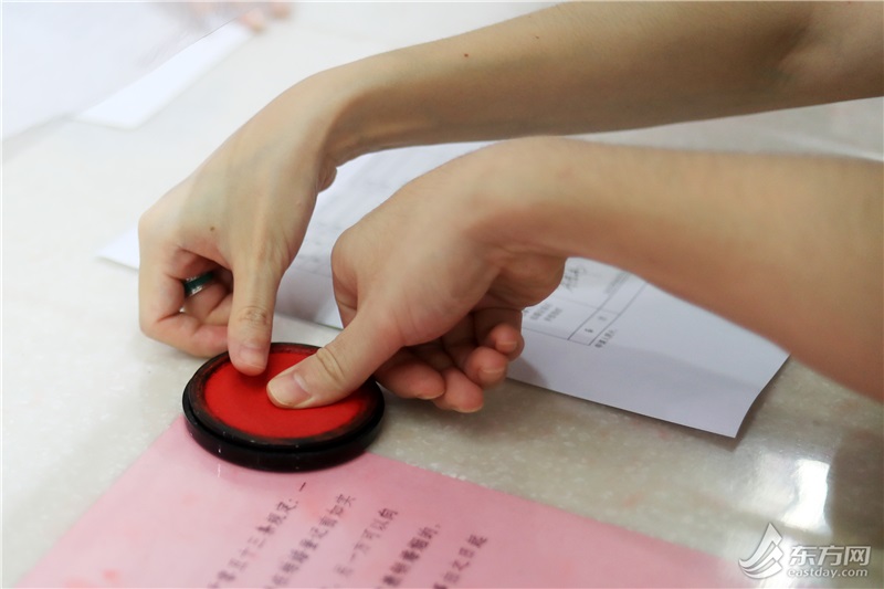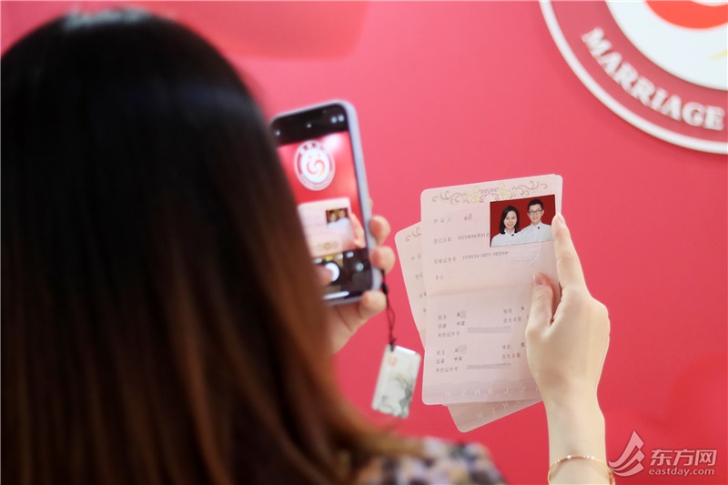 疫情封控期间,王小姐和未婚夫一直住在一起。6月1日零点一到,他俩立刻踏出小区,第一件事就是理发。“半夜三更的,理发店都不开,我们后来找了一个理发师朋友帮忙才改善了一下形象。”王小姐说。俩人“改头换面”后,又连夜赶去王小姐位于浦东惠南镇的家中取户口本,忙完天已微亮。“还好我们约的是下午,否则熬了一夜拍照肯定不好看。”王小姐一边说,一边在登记窗口填写表格,一边架起手机拍下属于他俩的特殊时刻。