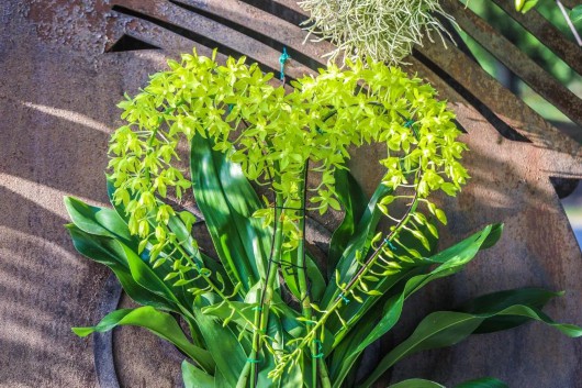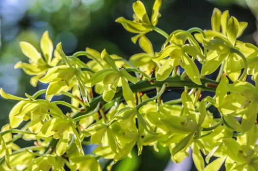 花被片上的斑纹较原种完全消失而呈现出黄绿色。该物种可耐高温和强光照,花序长可达1米且花朵密集,花期长达2-3月,具有极高的观赏价值。