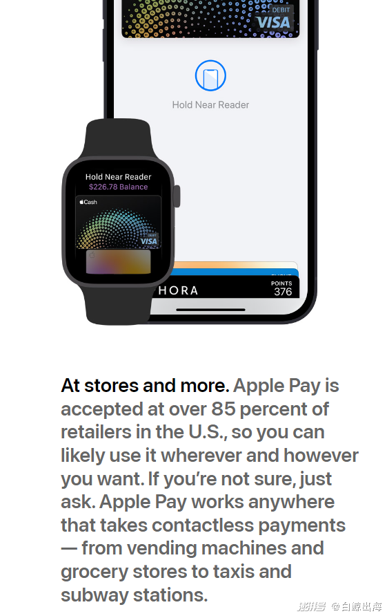 根据一位知乎网友的分析,随着 Klarna 的用户基数增加、覆盖市场范围变大,平台的运营成本、信贷损失也扩大了。而说白了,这些 Saas 服务商的竞争壁垒有但没有那么坚挺,主要比拼的是支付体验。与在全球拥有十几亿智能硬件的苹果相比,弱势不少。另外,在线下,根据 Apple Pay 官网的信息显示,目前全美已经有 85% 的零售商支持 Apple Pay。