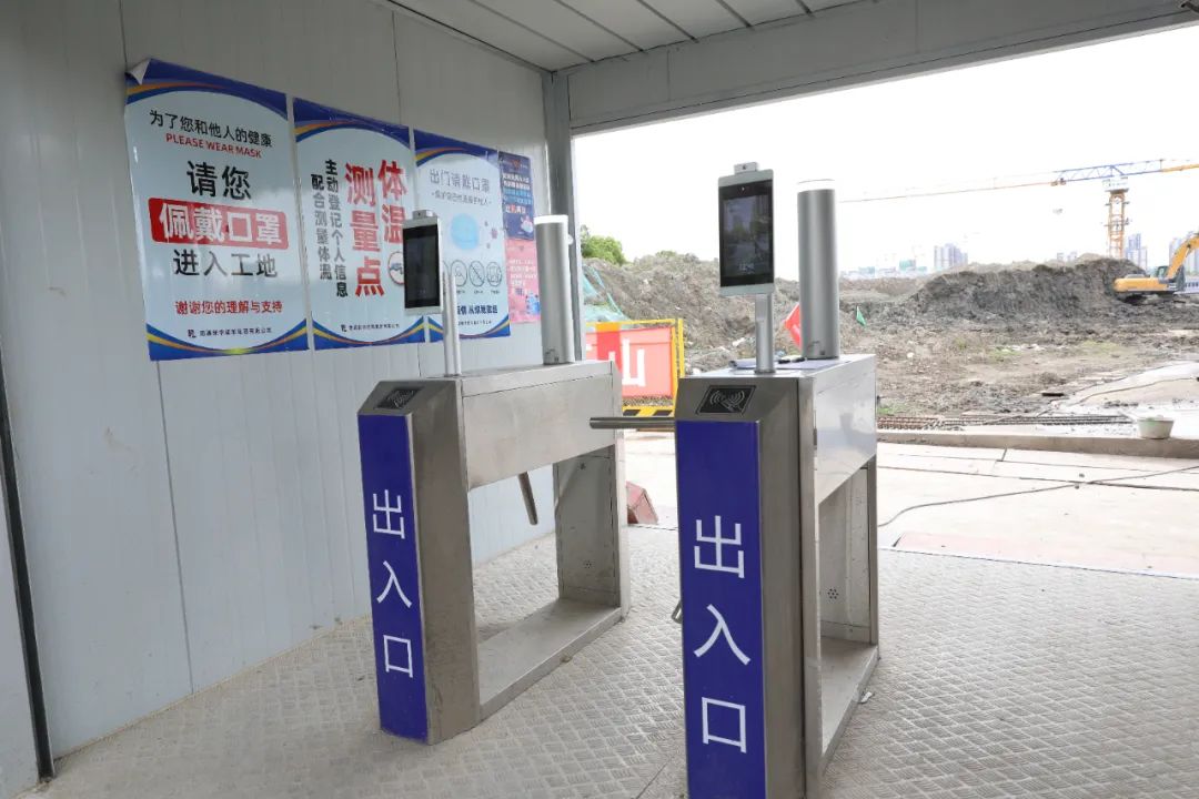 在疫情防控方面,工地入口处已装上“电子哨兵”和张贴了“场所码”,并设置物资静默区,物资经消毒后静置2小时以上才能进入工地。工地工人严格按照要求,佩戴口罩进场施工作业,三餐都在工地内的生活区域解决,并有相关人员每日对生活区进行消毒。