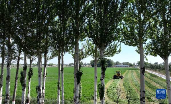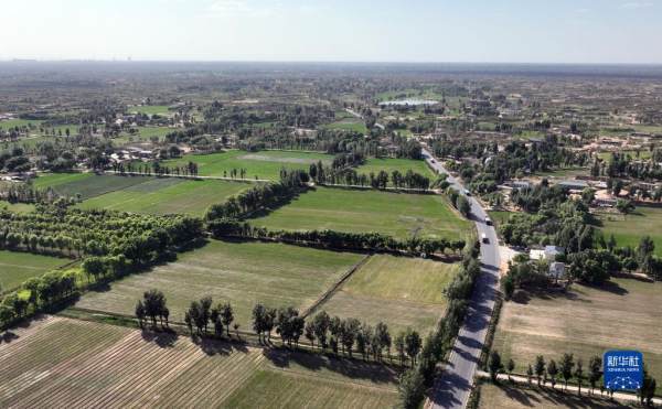 榆林市榆阳区巴拉素镇白城台村的农田防护林(6月13日摄,无人机照片)。