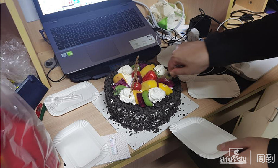 3月26日是何永兴的生日,这一天也是他参加研究生复试的日子。受疫情影响,大家不能外出庆祝生日,但是学校贴心地送来了蛋糕、炸鸡、汉堡和可乐,大家一起在宿舍共度。