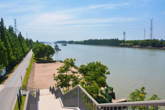一路往西过朱枫公路桥,徜徉于太浦河右岸,变得是方位,不变的是在这葱茏绿意的遮蔽下,斑驳的光影给堤防覆上一层夏日梦幻的色彩。