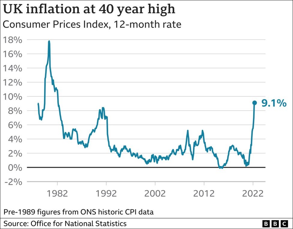 【编译/观察者网 李焕宇】7%、9%、9.1%......今年以来,英国的通货膨胀率已连破纪录。两个月前它刚创下近30年来的新高;上个月就打破了近40年来的新高;如今它再创新纪录,达9.1%。