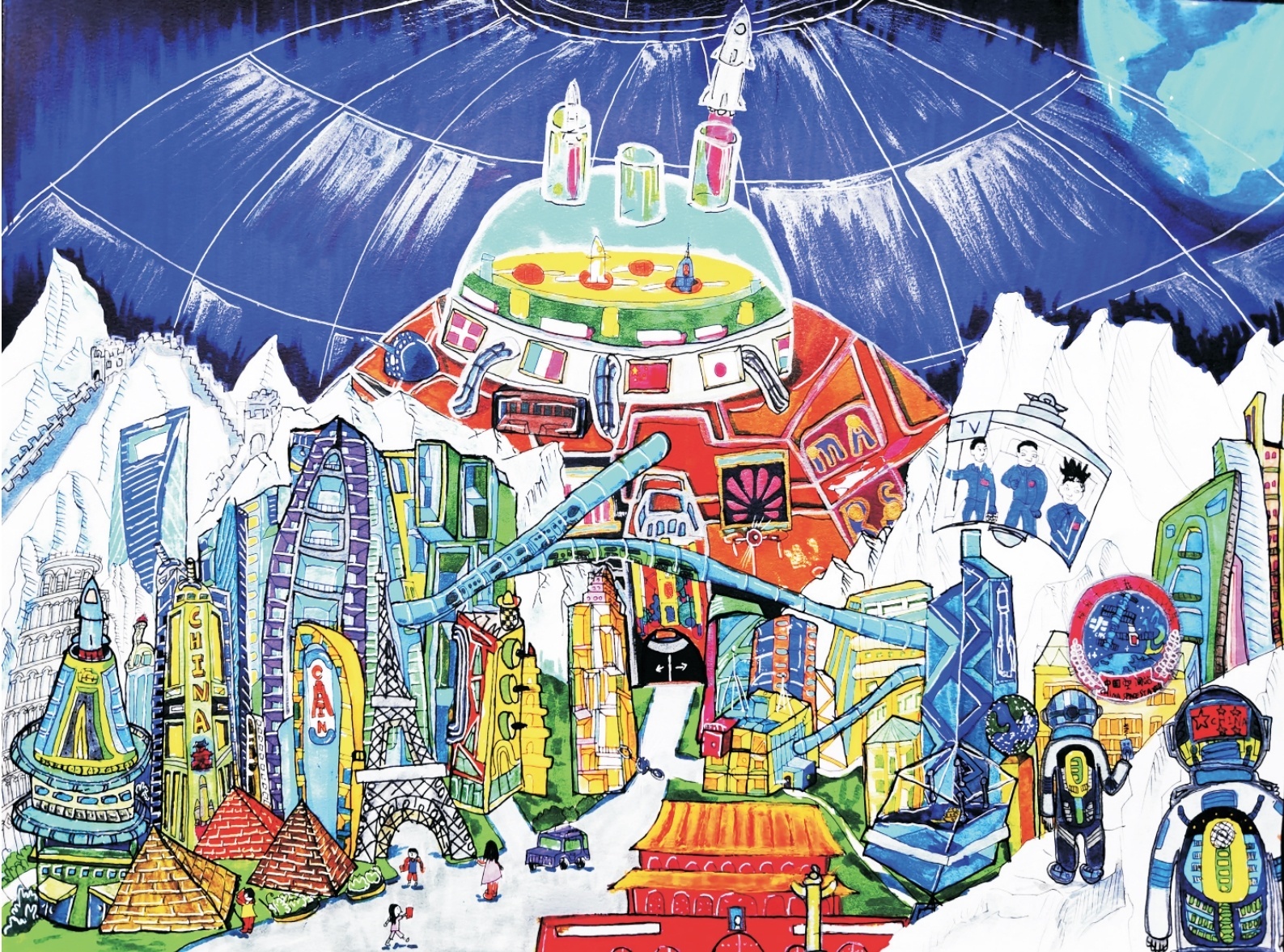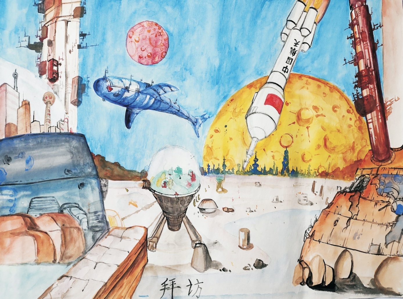 图为《通往月球的高铁》北京航空航天大学实验学校李泽君作品。