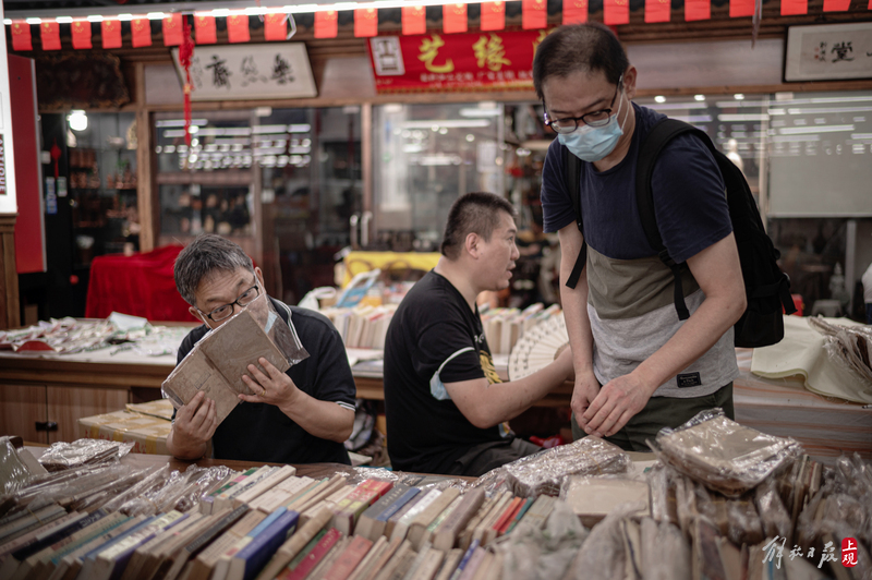 2022年7月3日清晨,记者来到福佑商厦地下2层和福民商厦的4层书市。目前,书市尚未恢复往日文庙书市的喧闹,书商和书迷人数较过去有所减少,但是交易、交流的气氛还是很热络。