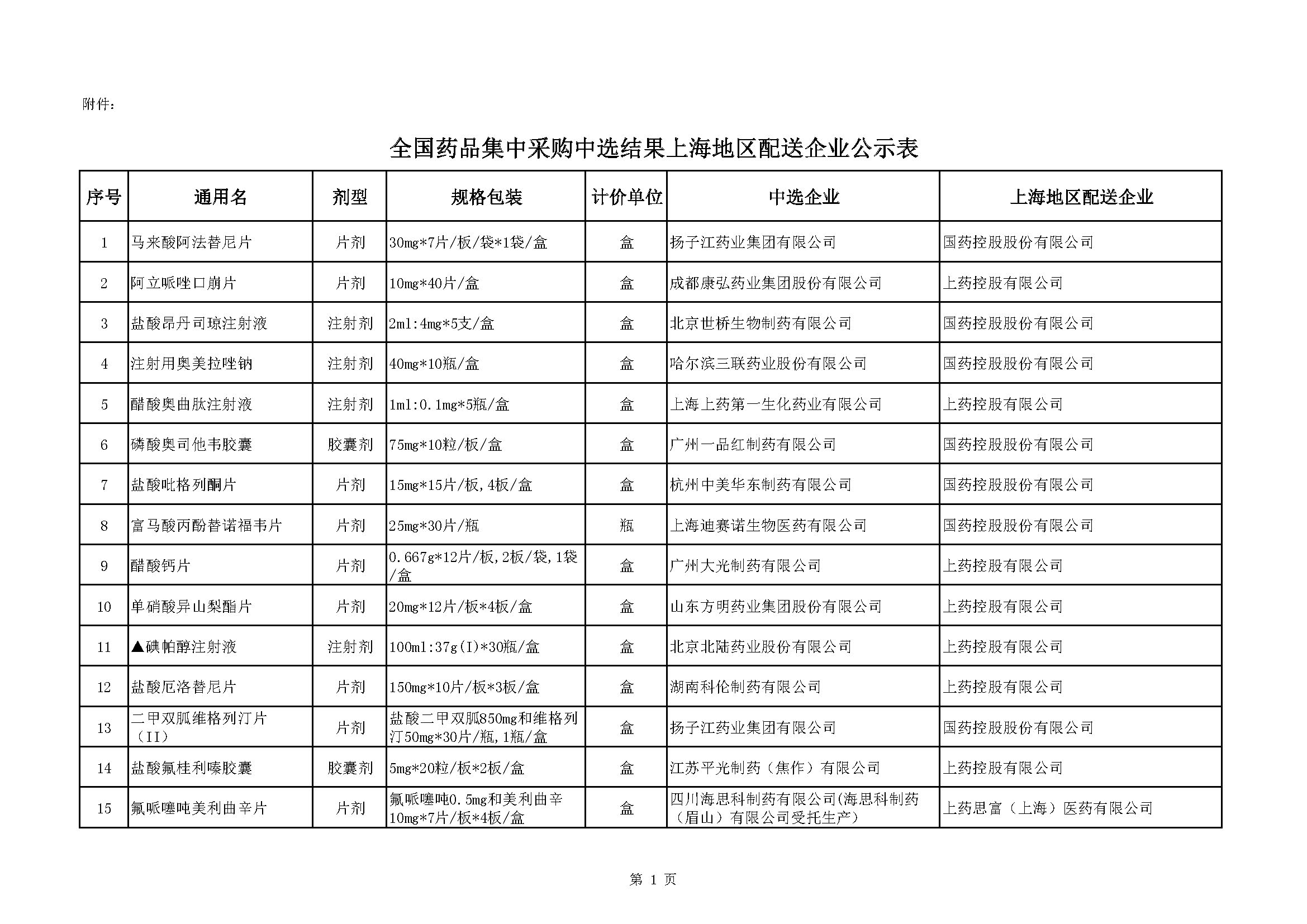7月20日,上海市医药集中招标采购事务管理所通过上海阳光医药采购网发布消息,公示第七批全国药品集中采购中选结果在上海地区的配送企业,公示截止时间为7月23日。