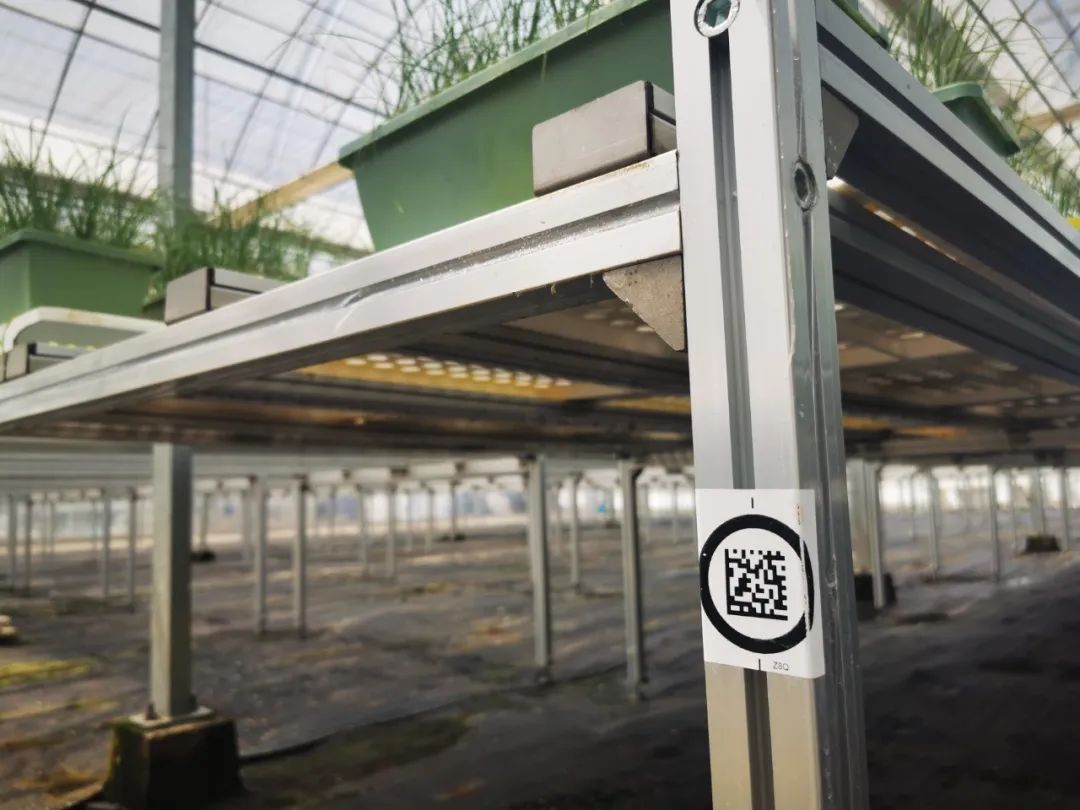 目前,温室大棚的一个个种植台已经张贴了二维码。这些二维码将作为自动导引运输车(AGV)的识别标的,引导运输车开展农产品、种植盘等的自动运送。