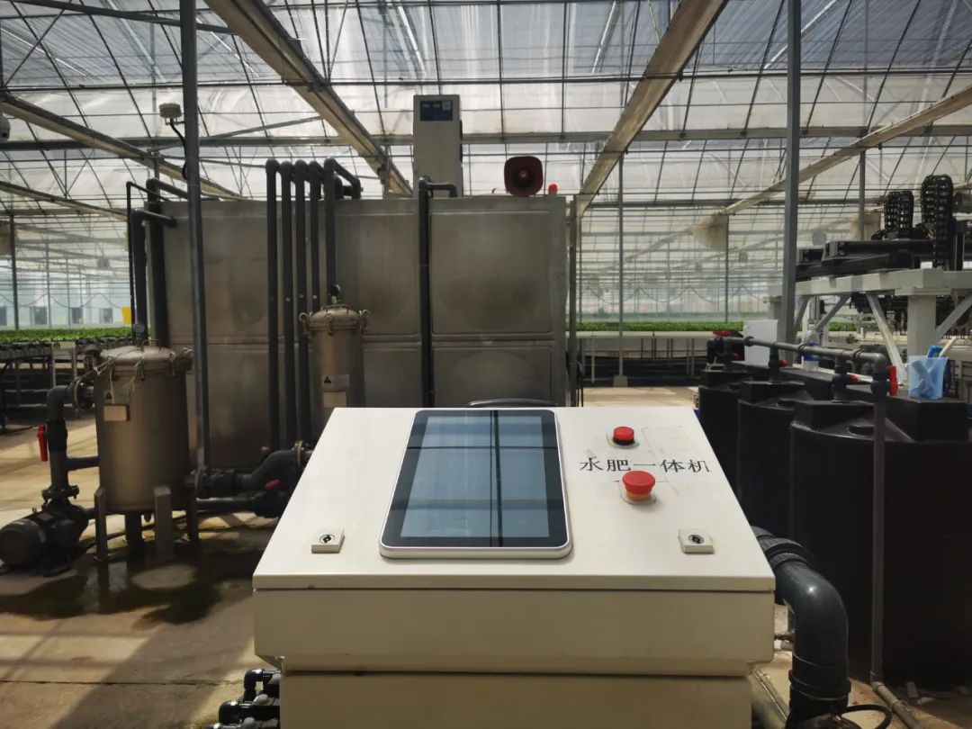 水肥一体化设备则通过数字系统对主机、母液桶、工作液桶的控制,按照设定的电导率和酸碱度自动配制营养液,以设定的灌溉频率、时长对生产区进行统一灌溉。
