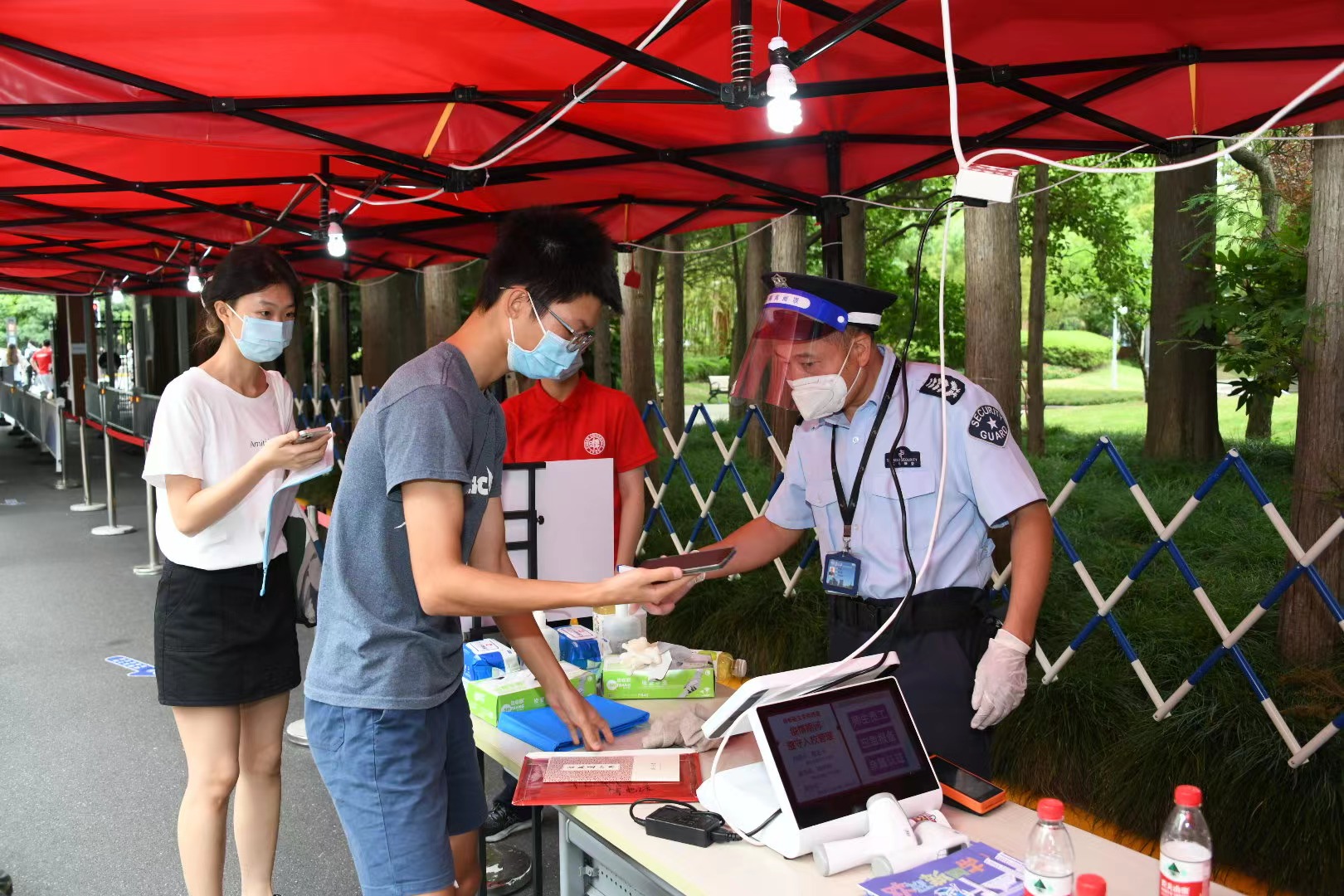 新生报到当天,只需几秒钟,在校门口扫一扫校园虚拟卡就能迅速“通关”。随后在学生志愿者的帮助下,双胞胎们拖着行李直达宿舍楼。今年,本科生线下迎新继续采取“刷脸”的方式,学生在线就能完成报到程序,尽量减少聚集。原来,提前半个月,她们就在线上上传各项报到所需的个人信息以及健康检测情况。