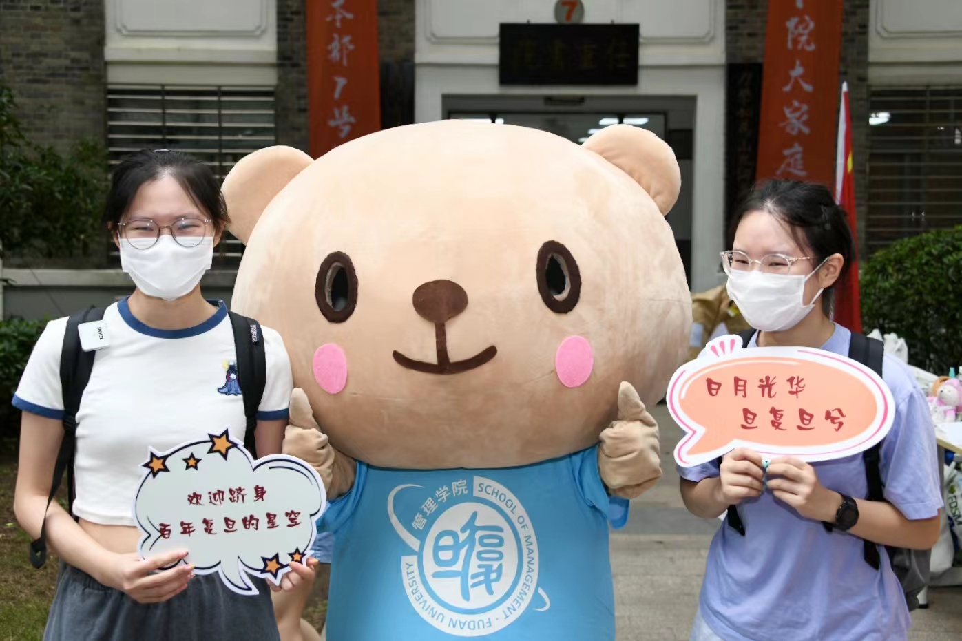复旦大学新生将分别进入志德、腾飞、克卿、任重、希德五大书院,分别以复旦历史上德高望重的五位校长命名。各书院用心地为萌新们准备了入学的第一份“礼物”。今天,属于任重书院的满思奇、满思易姐妹,在宿舍楼前领取“书院大礼包”,还和可爱的吉祥物一起合影留念。