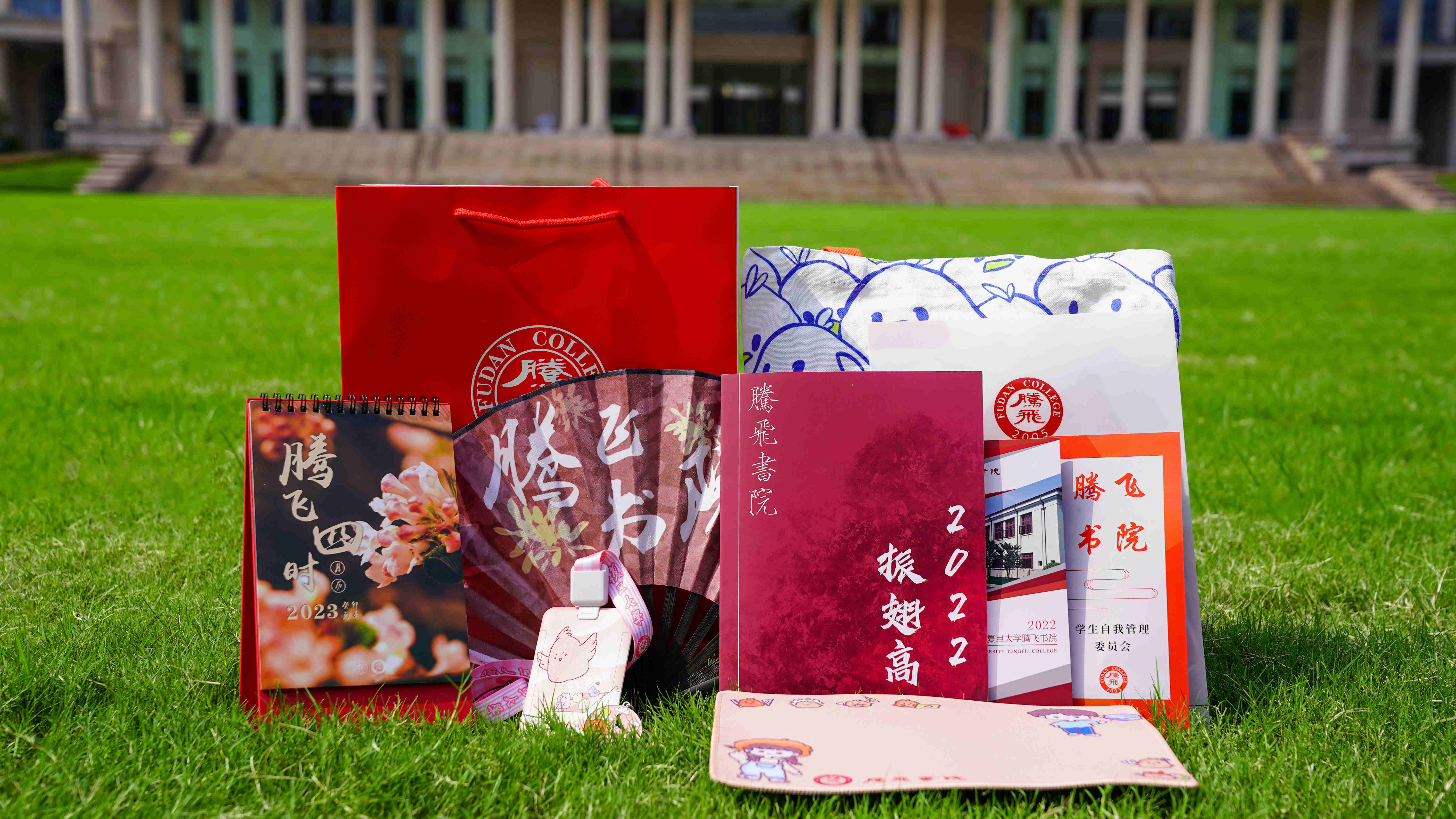 书院手册、笔记本、风扇、文件夹、书签、卡套、餐盒、鼠标垫……由学生自主设计主题文创内容倾注来自学长学姐们的爱意,希望帮助新生尽快熟悉复旦文化,融入校园生活。