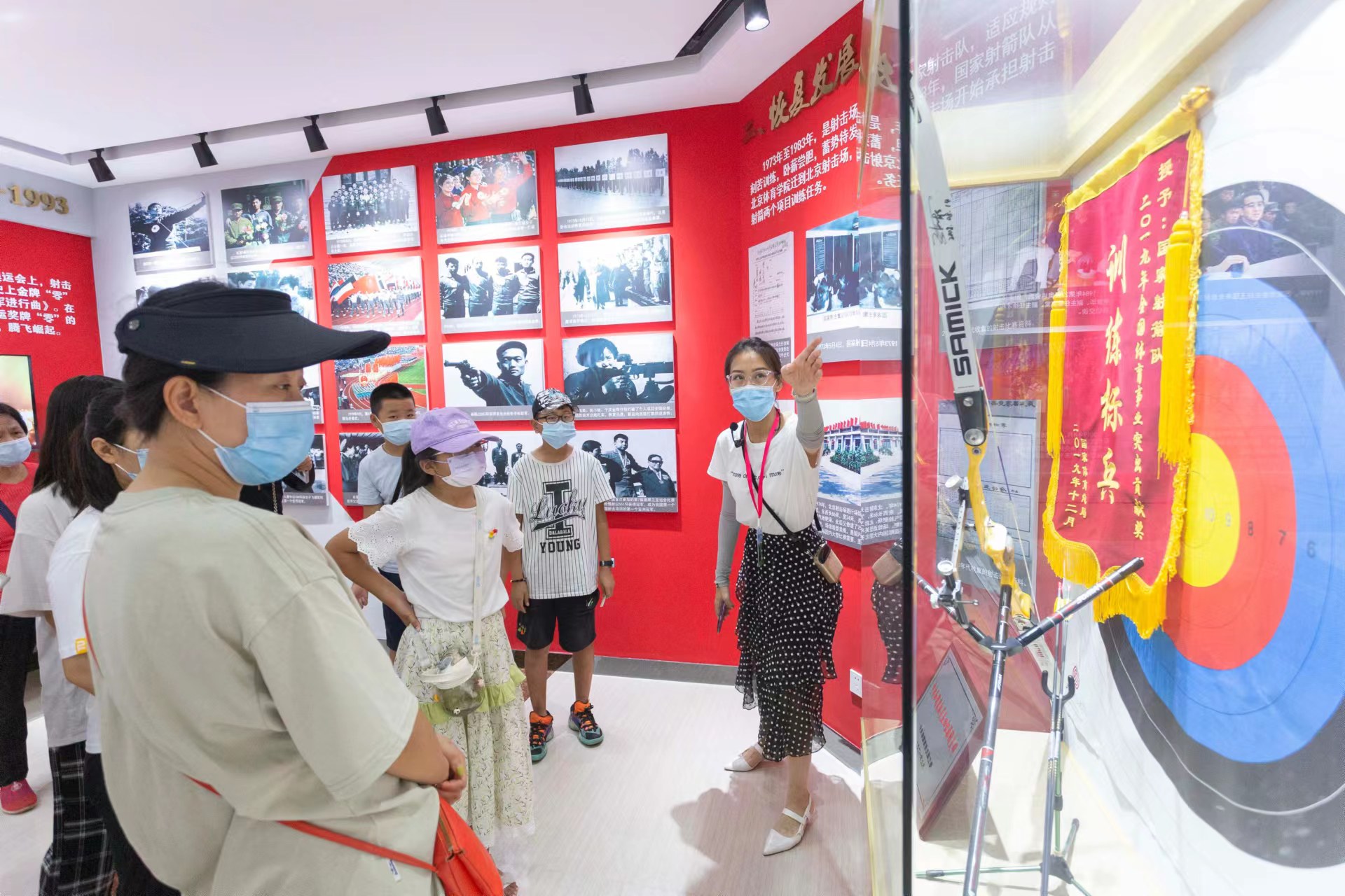 活动中,孩子们和家长跟随讲解员聆听了关于建国初期体育事业艰难前行的历史,了解了明星运动员荣耀背后艰苦训练的鲜活事迹,鼓舞着在场的每一个人。随后大家参观了室内展厅,全面了解射击、射箭运动近40年的发展历程和取得的成就。参观中,家长朋友和孩子们仔细聆听、认真观察,对展出的图片、实物、荣誉奖杯、奖牌表现出浓厚的兴趣。面对一排排金光闪闪的奖杯奖牌,孩子们激动万分,在讲解员的带领下,重温了那一幕幕振奋与感动的瞬间。通过此次参观活动,了解了运动员荣耀背后艰苦训练的鲜活事迹,重温了那一幕幕振奋与感动的瞬间。让孩子和家长们感受到了运动员们的钢铁意志和坚强的毅力,培养了青少年顽强拼搏的意志品质。大家纷纷表示,要学习运动员们不怕苦、不怕累的精神,做一个积极向上的好少年,长大后用自己优异的成绩为祖国、为家园做出自己的贡献。