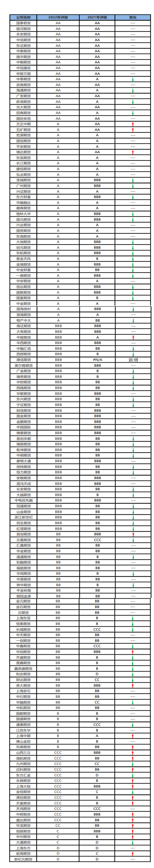 据证监会方面披露,分类评级根据《期货公司分类监管规定》,经期货公司自评、派出机构初审,由证监会有关部门、期货交易所、中国期货市场监控中心、中国期货业协会等单位代表组成的期货公司分类评审委员会复核并审议确定了2022年期货公司分类评价结果。