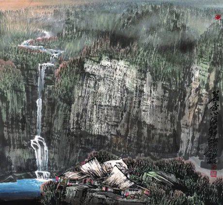 山水之魂乃是朱常棣艺术之灵魂,他不仅继承了古人所云的“搜尽奇峰打草稿”的创作圭臬,同时在此基础上也有诸多创新。“四川山水和其他地方的山水风格有很大不同,因此我也采用了与之不同的笔法来展现其风貌。”朱常棣所言的笔法,在圈内有个响亮的名字“常棣皴”。