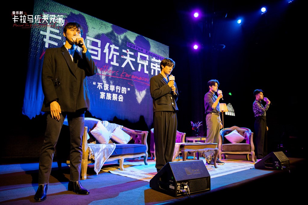 东方网记者包永婷9月21日报道:由上海大剧院创制中心携手韩国原班主创制作出品的音乐剧《卡拉马佐夫兄弟》中文版9月20日在“不止空间”举办了“演前家族聚会”,“卡拉马佐夫家族”成员首度亮相。10月28日至11月13日,该剧将在上海大剧院中剧场上演19场。 音乐剧《卡拉马佐夫兄弟》中文版改编自俄罗斯文学巨匠陀思妥耶夫斯基的同名小说,这部作家人生最后的作品,凝聚了他一生中在文学经历及无数苦难折磨里形成的人生哲思与体悟。小说通过一桩真实的弑父案,展现了道德败坏的老卡拉马佐夫与四个儿子之间的激烈矛盾与冲突。