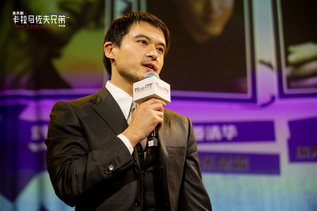 中方导演李松楠现场表示:“如何引导演员们爆发出自己的能量,是中文版制作中的挑战。所谓的能量,并不完全取决于演员们对于剧本有非常深入的了解,反而是对上天的质问、对生活的困惑是能够爆发出这一能量的关键。” 已经拥有多部音乐剧制作经验的音乐总监姜清华,为大家解读了音乐剧《卡拉马佐夫兄弟》中文版中不为人知的音乐门道:“虽然整部音乐剧只有一台钢琴伴奏,但韩国的编曲李珍旭是采用了交响乐的思维来完成的这部作品,这样特别的处理才能让演员们唱出来的音乐,在现场能够扎到观众的心里去。”