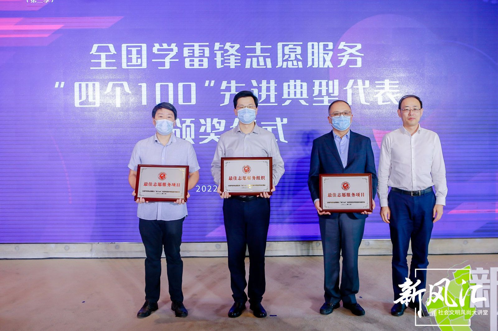 上海市文明办副主任郑英豪,为全国学雷锋志愿服务“四个100”先进典型代表颁奖。