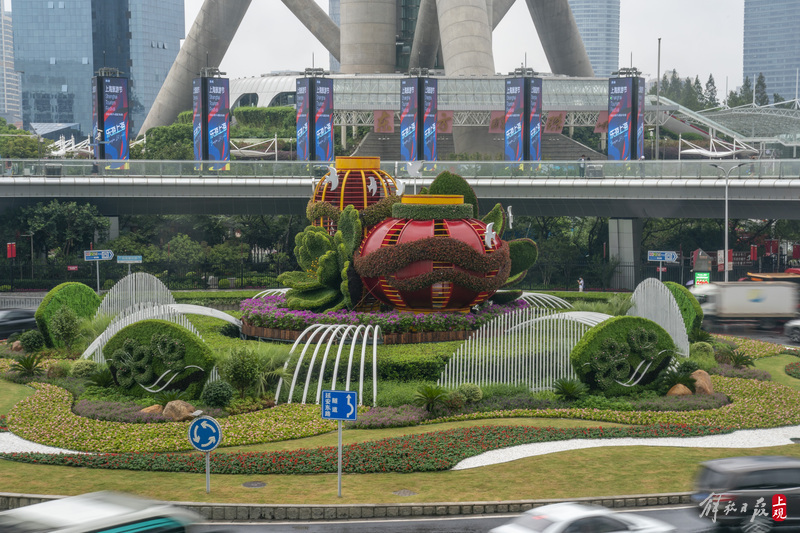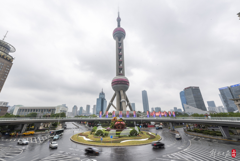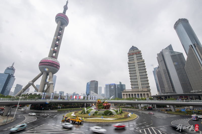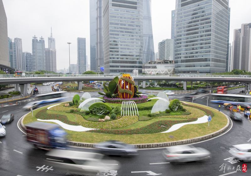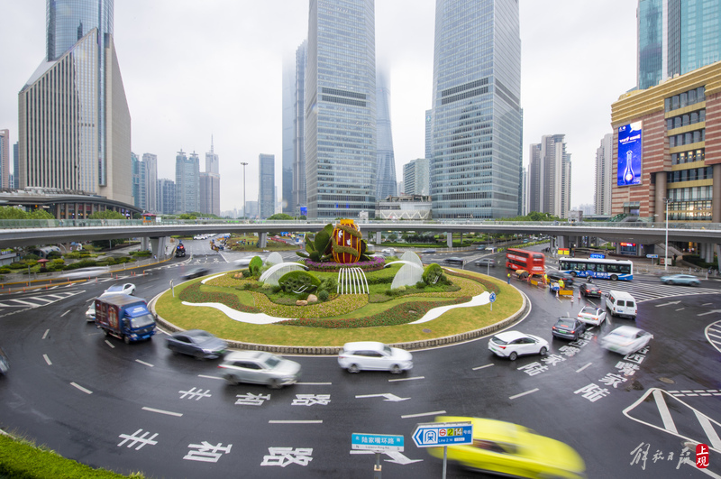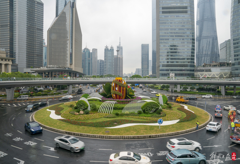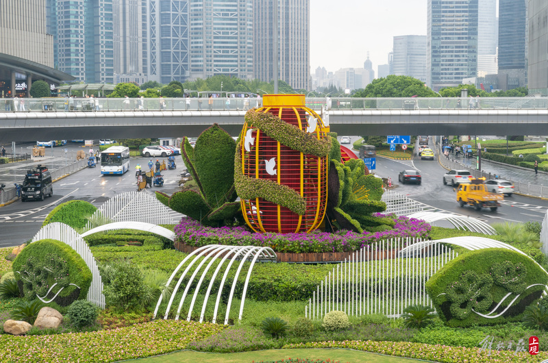 陆家嘴环岛“国庆装”全新亮相,“瑞彩年华”主题立体花坛落成