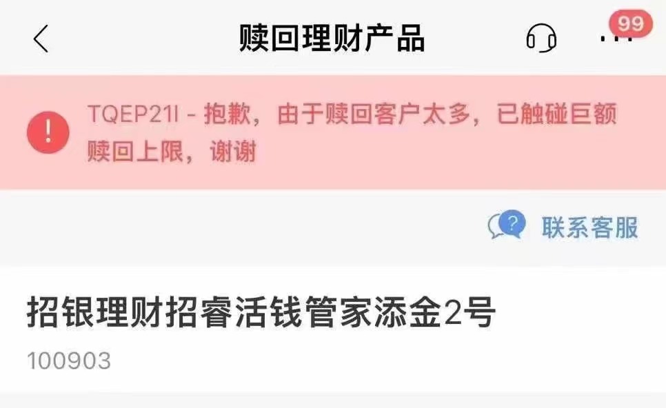 招银理财“添金2号”频遇巨额赎回,招行客服:近期此类情况较多