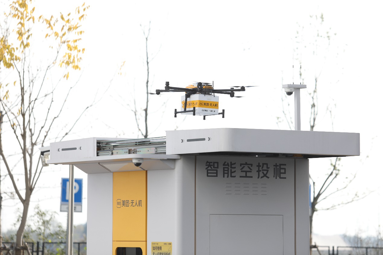 ▲美团无人机在商业写字楼园区服务(摄影师 管乐)
