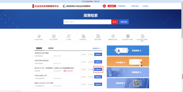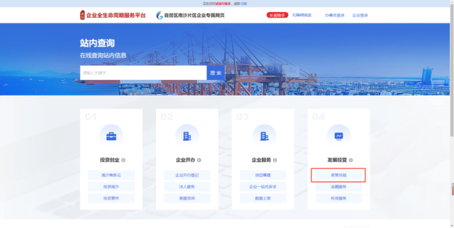 南沙区企业综合服务平台网址:https://qiye.gzns.gov.cn/