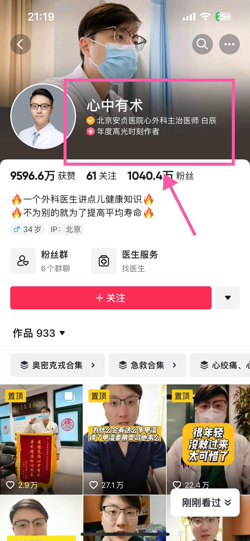 所以,要确认社交平台上各种“白大褂”的身份,第一步是查看他们的身份认证。如果身穿“白大褂”、绿色手术服,或自称是“医生”,却没有对应的身份认证,那么对主播所标榜的“医生”身份以及以医生名义所介绍的内容就一定要留个心眼了,极可能是假医生。