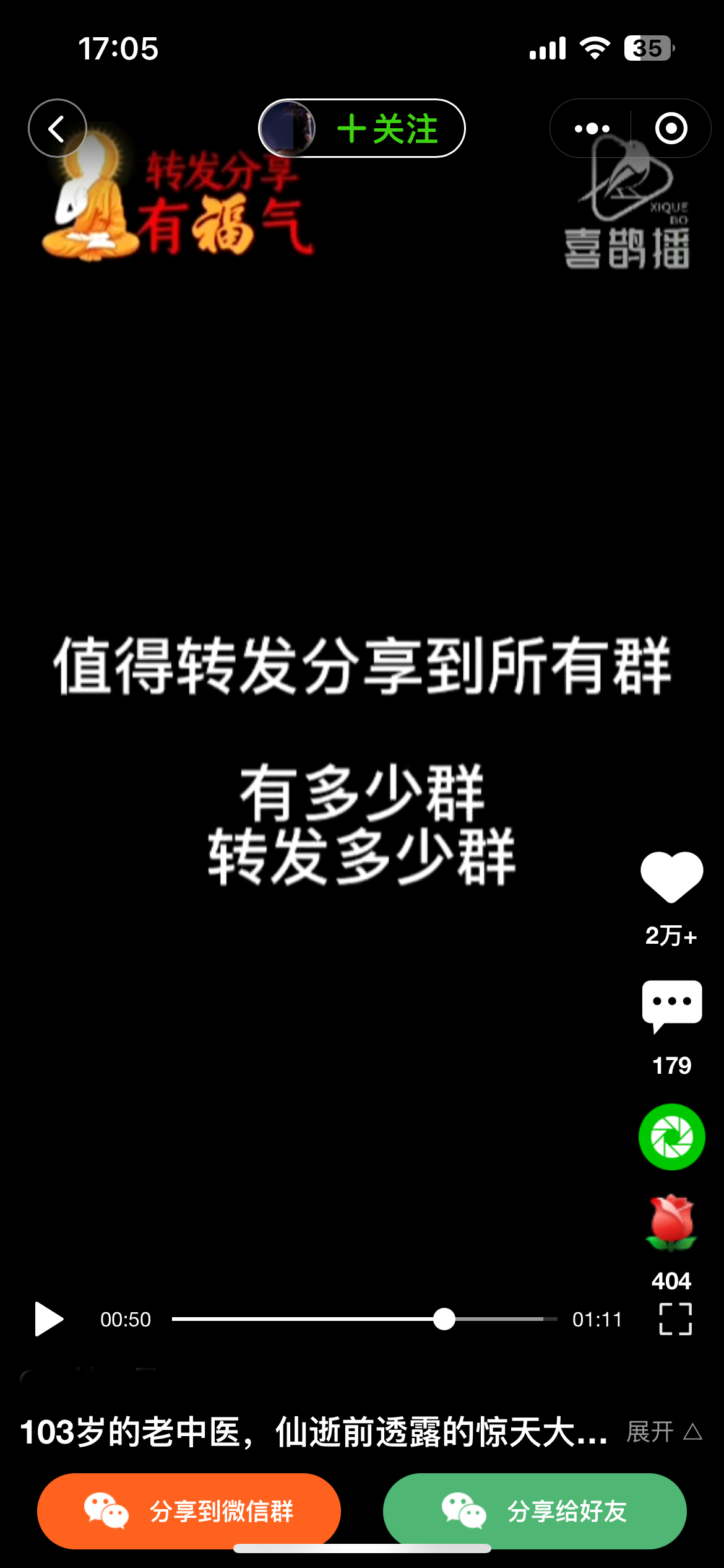 至于《103岁的老中医,仙逝前透露的惊天大秘密!为了全家人的健康,你一定要……》所说的“秘密”,包括“苦瓜加生姜,三个月就不用胰岛素”“胡萝卜榨汁,老年斑不见了”“芹菜加红枣,晚上不看手机也能睡着了”等,也都是无稽之谈,“老中医”同样不见踪影。就是这样一条胡编乱造的短视频,发布者却在结尾处鼓动观看者:“这个视频太珍贵了,多少钱都买不到,值得转发分享到所有群”。