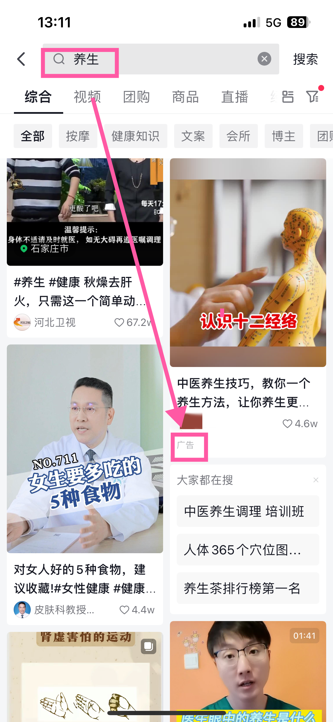 记者实测发现,主要社交平台对“医生”“医学科普”“养生保健”等关键词进行了算法设置,会屏蔽很多“一眼假”的信息。如果用户通过这些关键词检索,大部分结果来自已经通过身份认证的医护人员。不过,有一些标注为“广告”的账户也会出现在搜索结果中,观看者对这类视频须加以辨别。