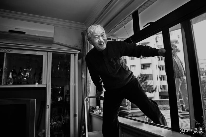 你看这些照片里,有秦怡给自己的儿子洗头,有乔奇捧着报纸,背后是玩耍的孙子,还有已经一头白发,在家里爬窗的“老顽童”牛犇……这种和舞台上角色的反差感,我觉得可以告诉读者,其实他们在生活中和我们并无不同,这既亲切,也让人感到佩服。