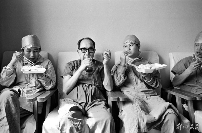 在院士系列的照片里,可以看到王振义骑着一辆自行车下班,吴孟超坐在争分夺秒吃盒饭的徒弟当中喝水休息……所以为什么要拍这些名家生活中的一面,因为他们的朴素和为科研事业作出贡献之间形成的反差,可以形成一种因果自洽的关系。