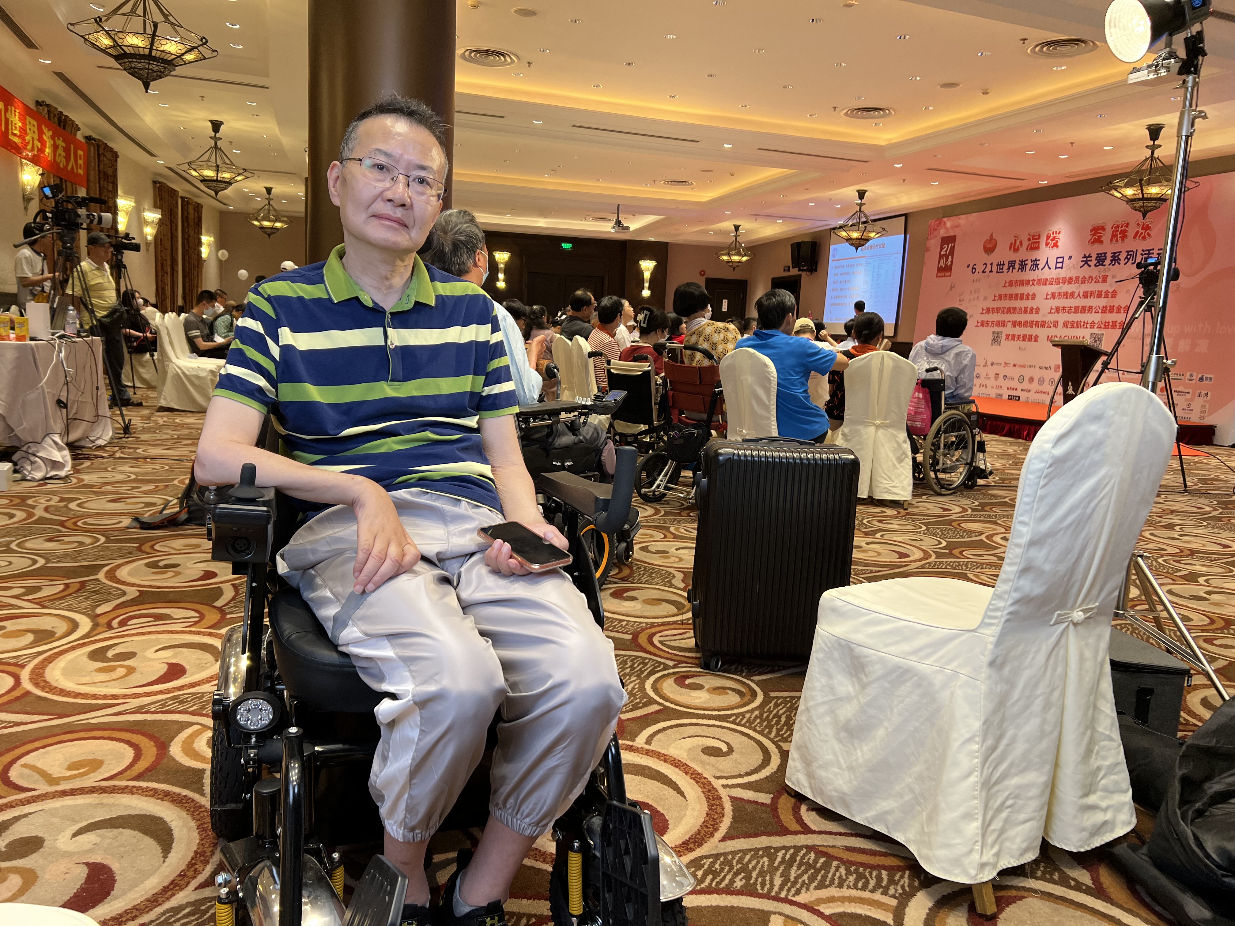 65岁的夏正兴出席“6·21世界渐冻人日关爱系列活动”。澎湃新闻记者 陈斯斯 摄