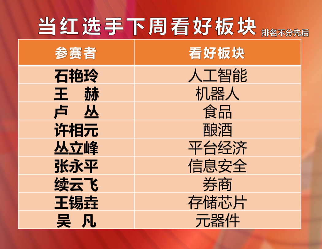 当红选手下周看好的板块: